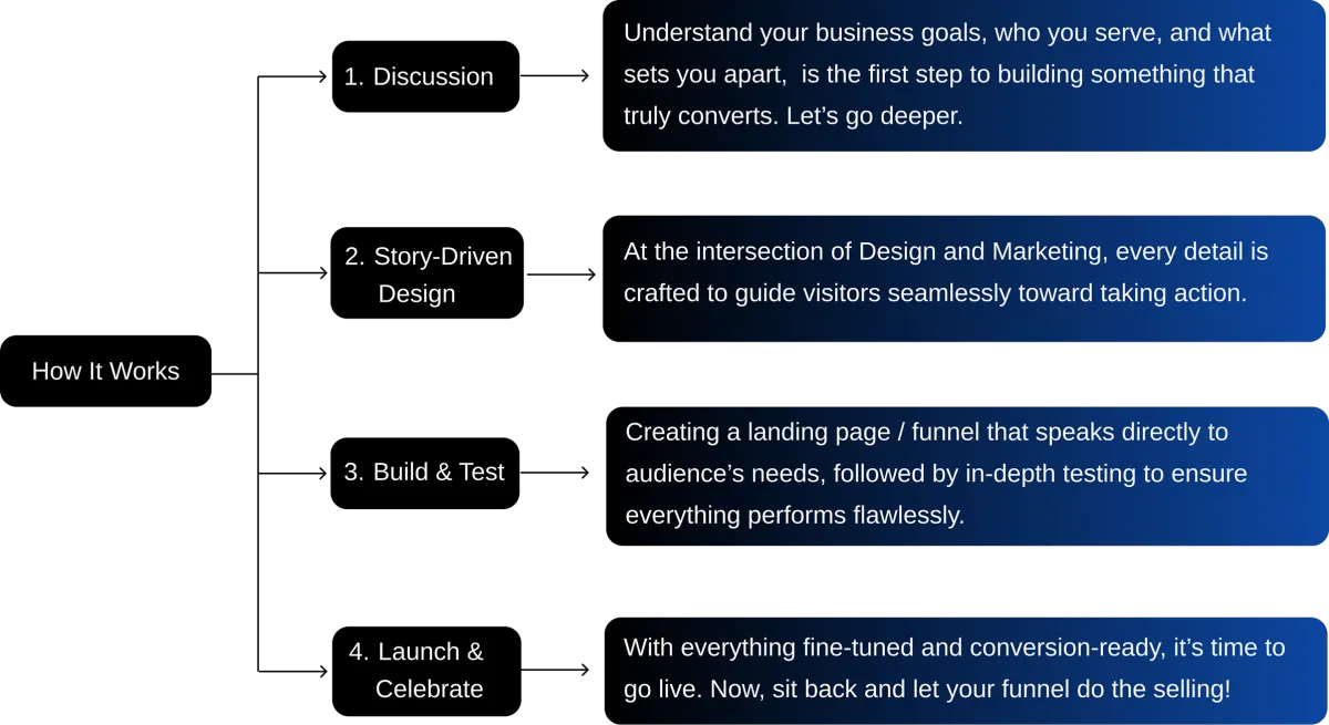 For us, a good funnel or automation isn’t just about tech.it should feel like an experience. That’s why we blend storytelling, design, and smart automation to guide your audience from first click to booked call, or even from first inquiry to a closed deal seamlessly.